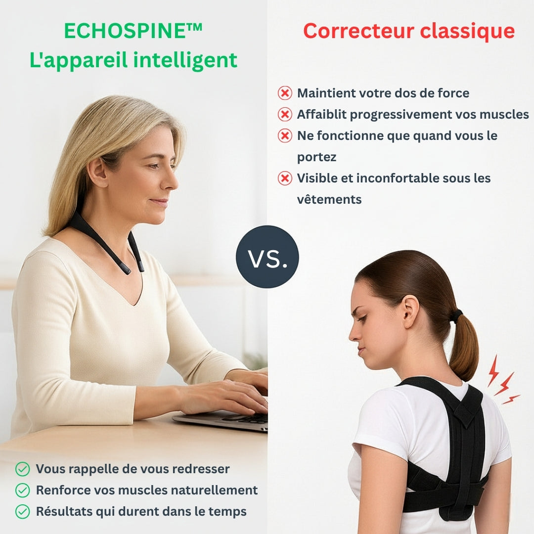 Les correcteurs classiques maintiennent, Echospine™ corrige. La différence ? Elle se voit.